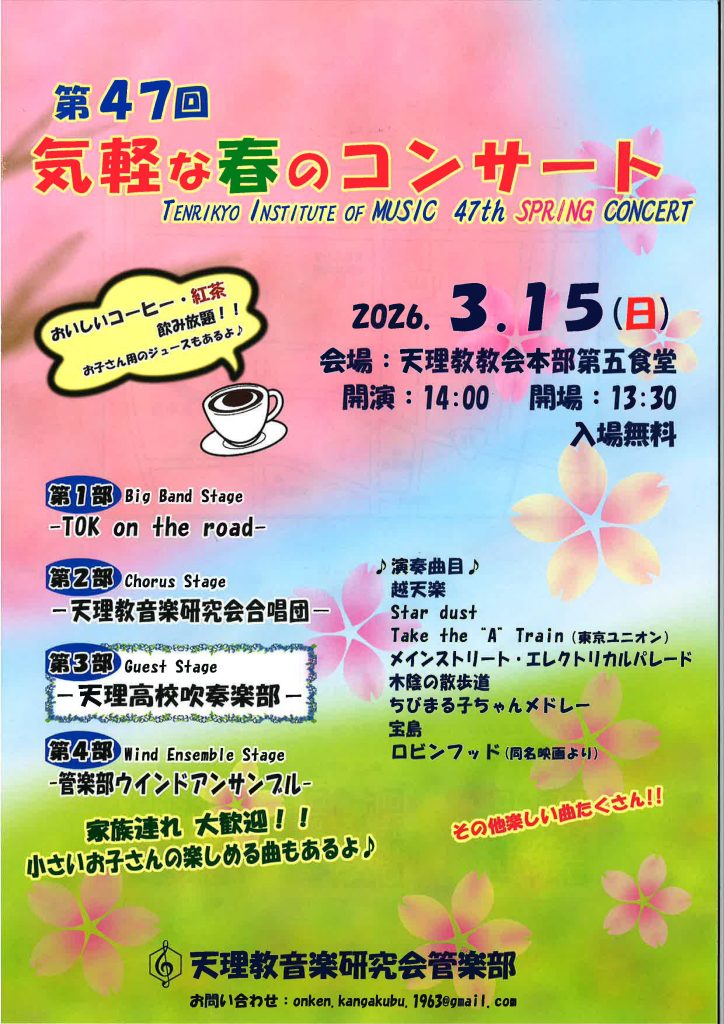 場所: 天理市民会館 午後2時 開演 入場無料